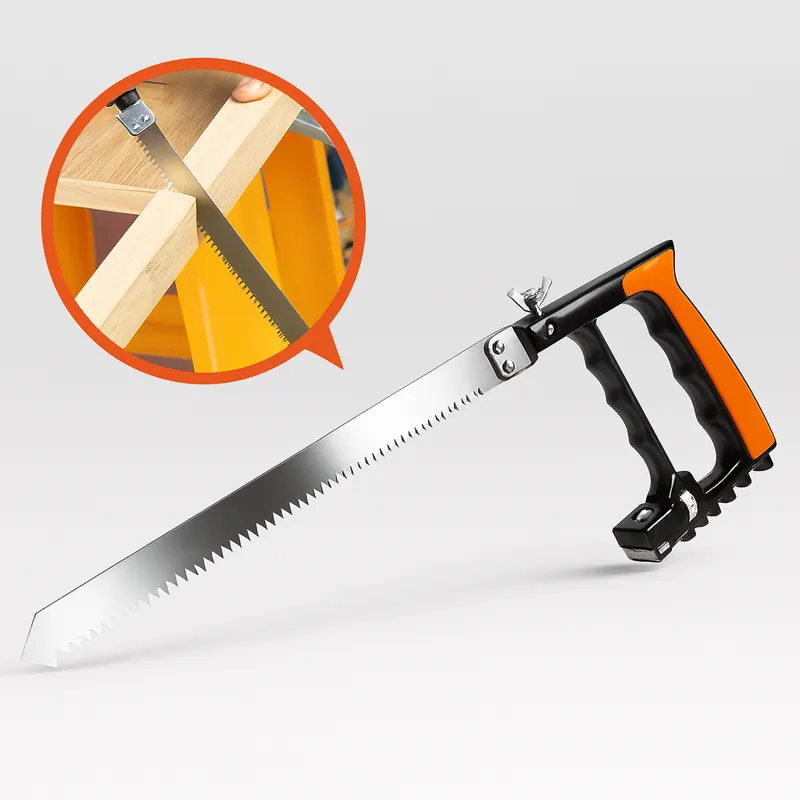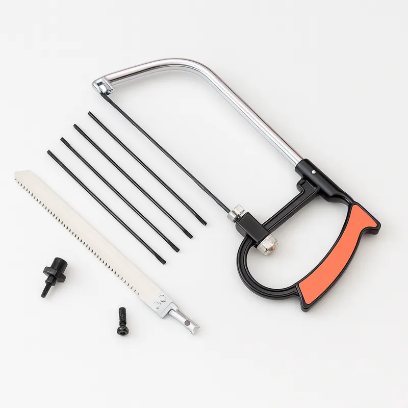 Sierra manual 8 en 1 con mango ergonómico y múltiples hojas intercambiables, diseñada para cortar madera, metal, PVC y más. Versatilidad y precisión en un solo kit.